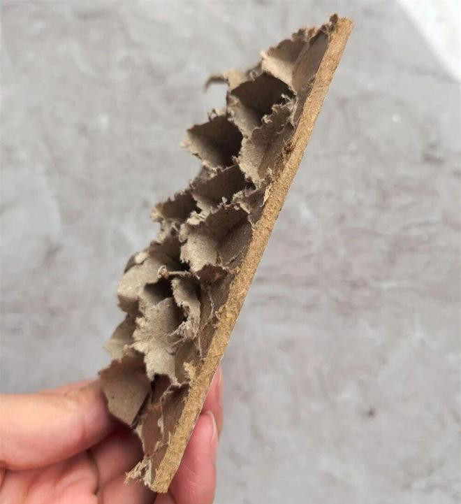 直到最近门上不小心划了个口子,越看越觉得不对劲,一狠心直接把门切开了一块,这不切不知道,一切才发现原来说好的木方填充,实际上却是用的蜂窝纸,这坑人的胆子也太大了!